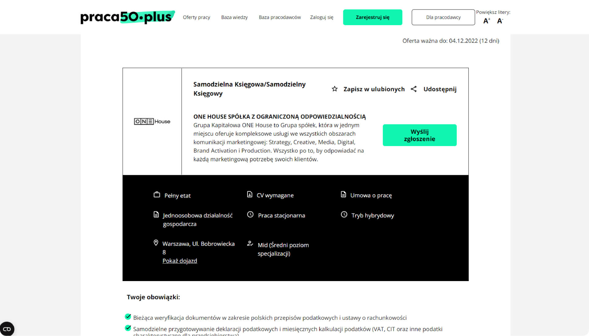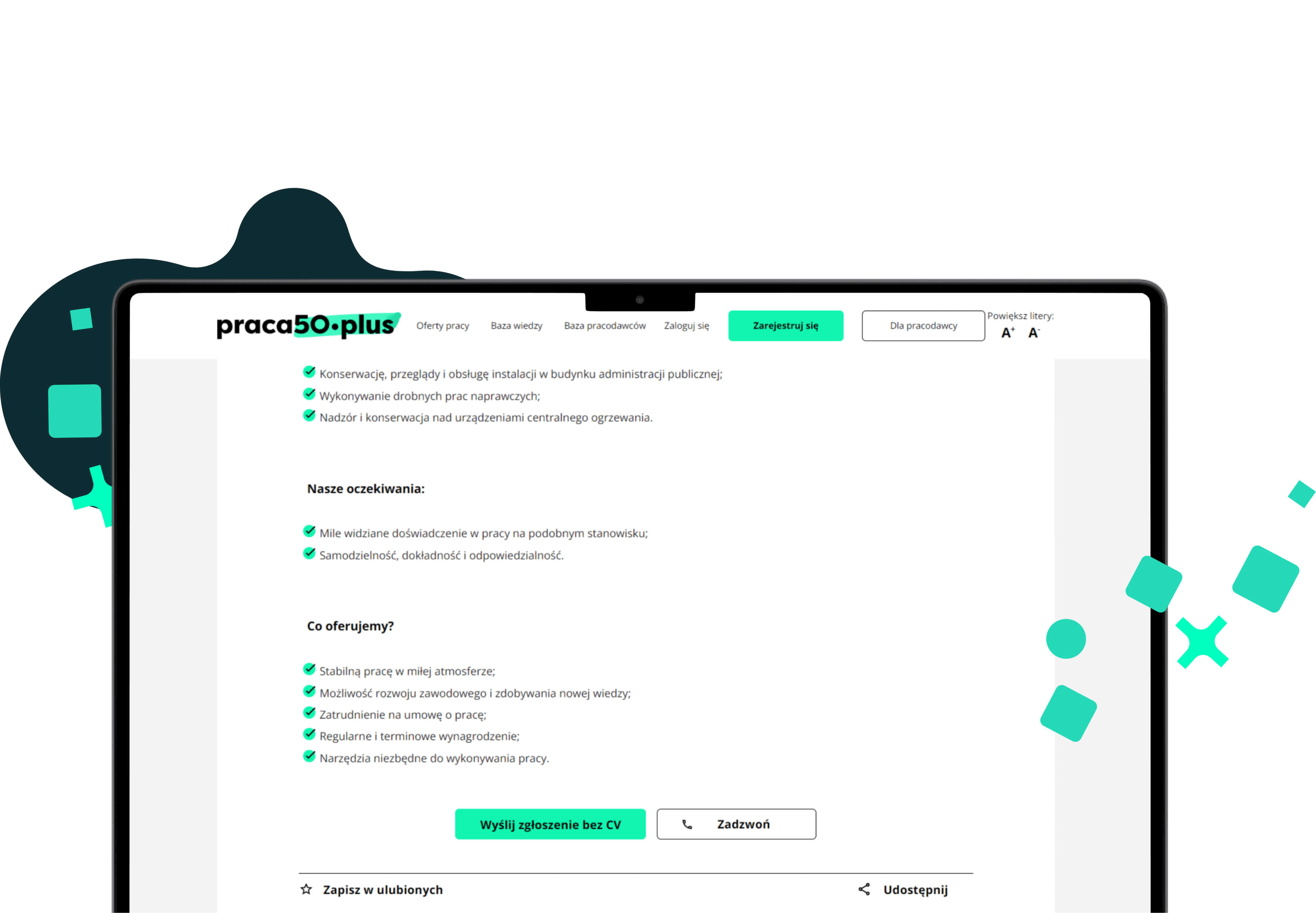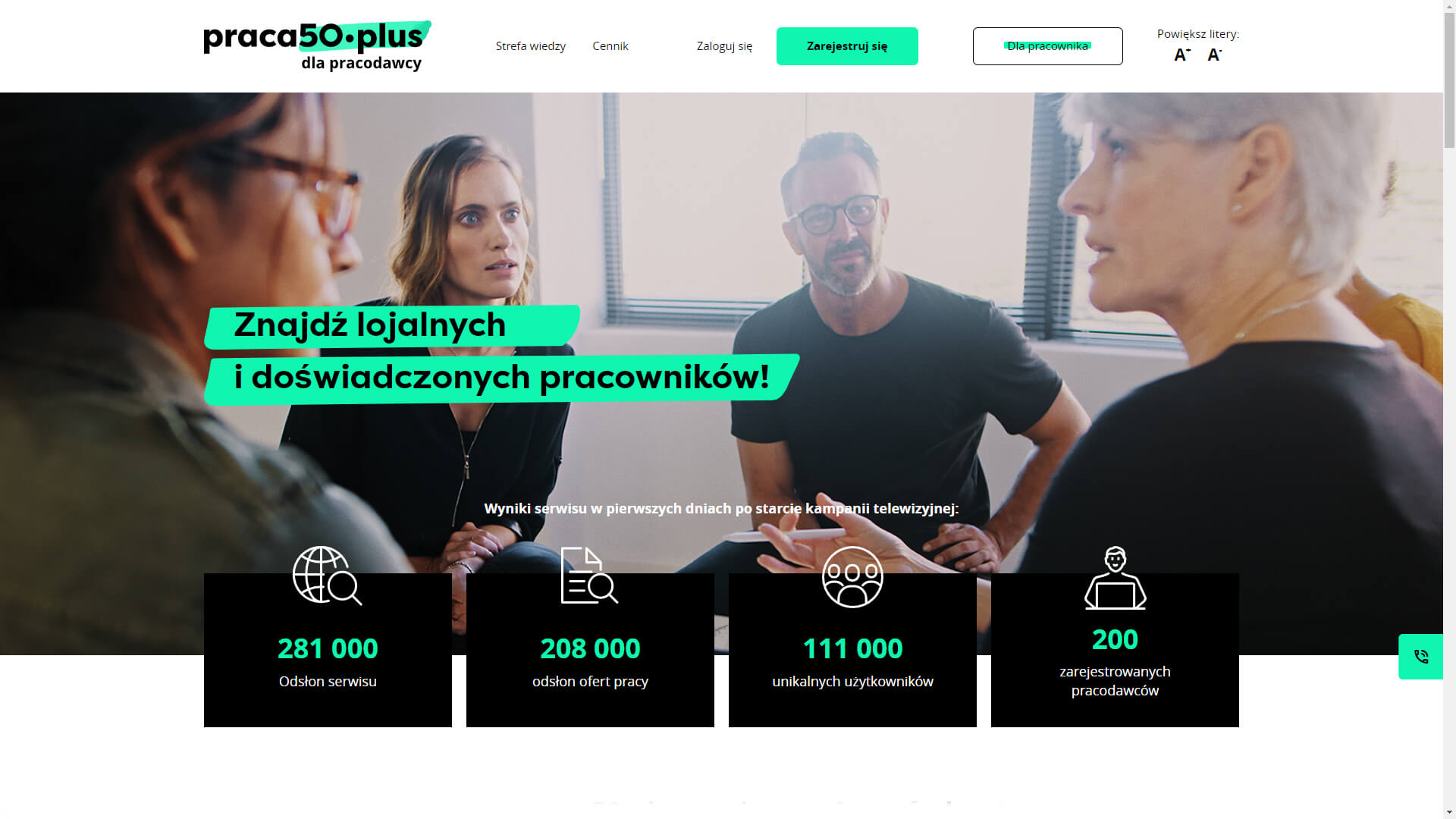 Praca50.plus is a job portal aimed at people over 50 looking for new professional challenges.