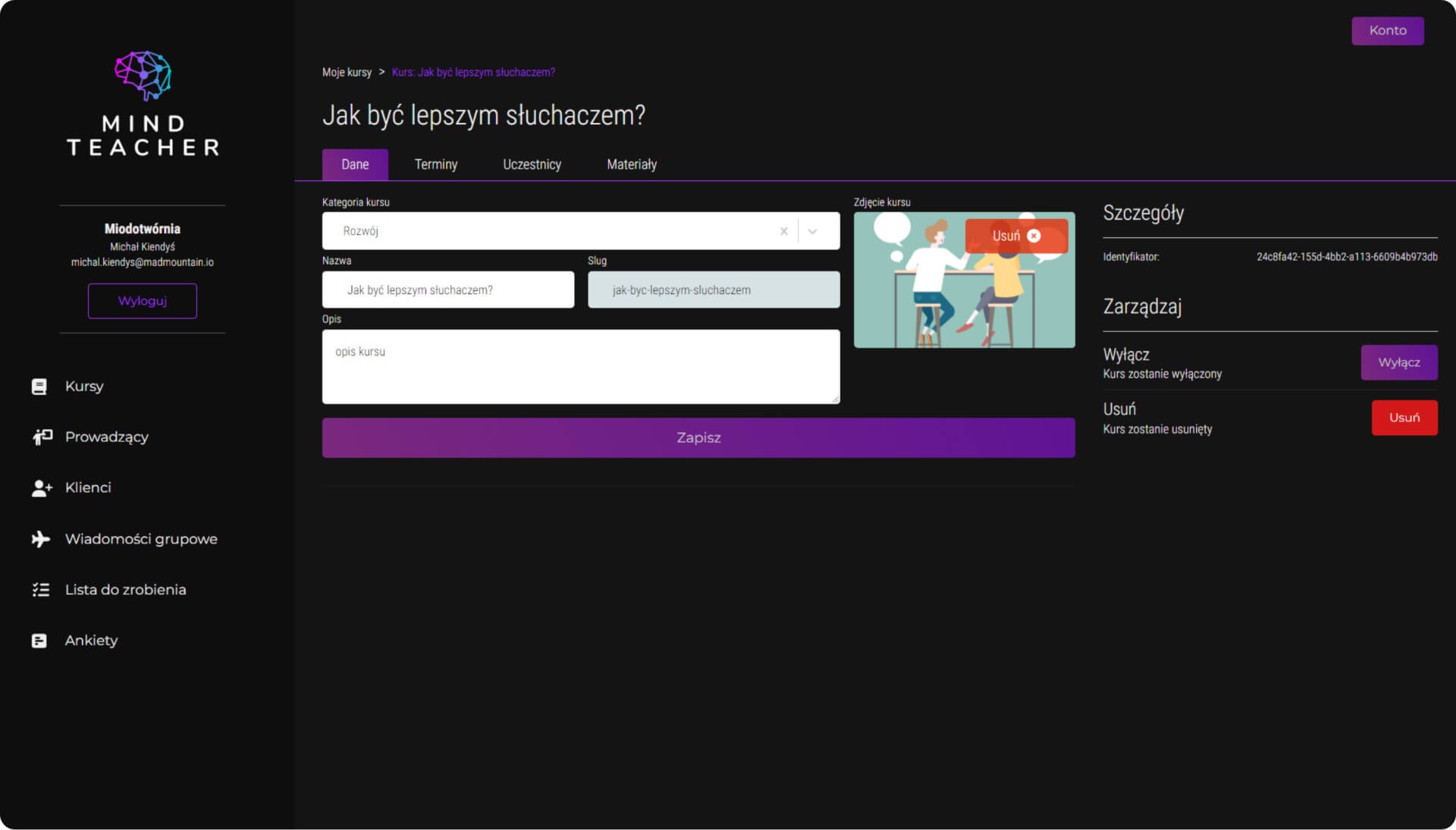 pozwalający firmom szkoleniowym zarządzać oferowanymi kursami, utrzymywać kontakt z uczestnikami i publikować swoją wizytówkę na portalu.