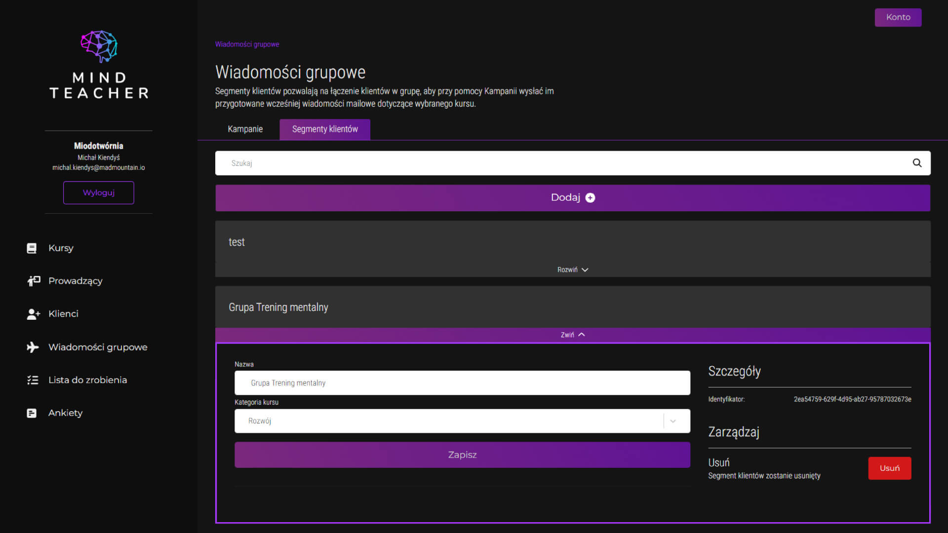 MindTeacher.pl jest serwisem internetowym, który umożliwia firmom oferowanie swoich kursów z zakresu rozwoju mentalnego. Jest to platforma edukacyjna, która zapewnia łatwy i wygodny sposób na dostęp do szkoleń dotyczących rozwoju osobistego, nastawienia, motywacji i produktywności.